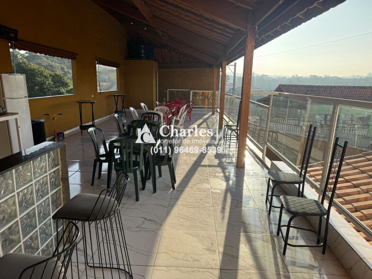 Varanda vista geral do terreno e piscina.